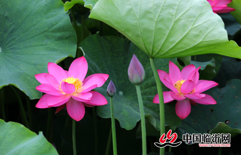 中国臨沂網6月20日掲載 夏になって、臨沂市五洲湖公園にある蓮の池で、蓮が咲き、美しい少女のようで、綺麗な姿を現す。