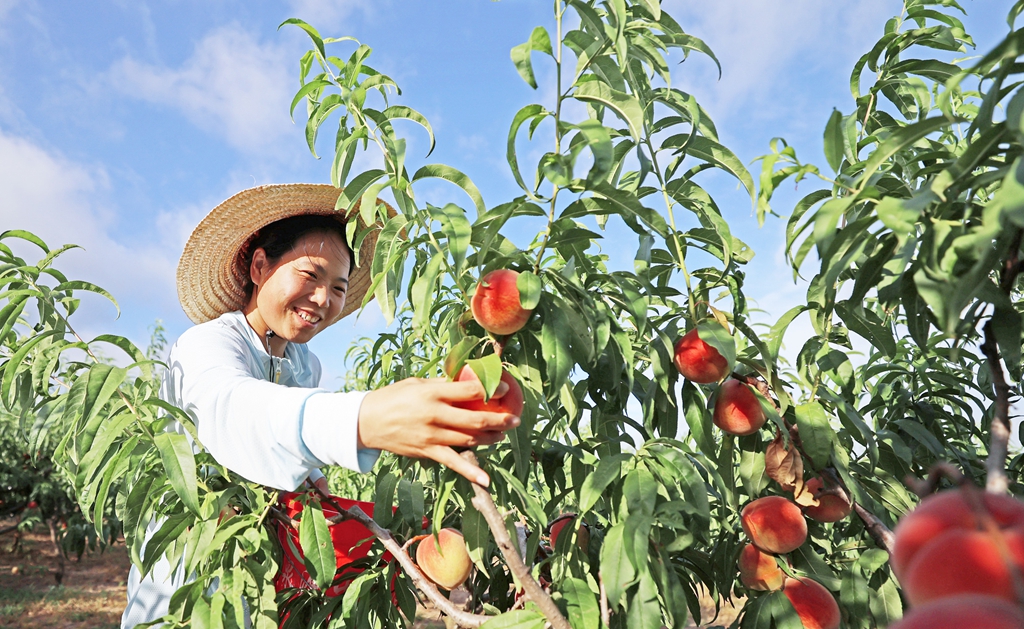 7月22日、臨沂市郯城県郯城街道陵坡村の村民たちが新鮮な桃を収穫していた。大暑の時期、臨沂市郯城県郯城街道陵坡村の村民が栽培している桃が豊作に恵まれ、村民たちは市場供給のために収穫に忙しくしている。郯城県郯城街道は党建設をリードに掲げ、農村振興に力を注ぎ、野菜や果樹などの特色農業を積極的に発展させ、農業の効率向上と農民の収入増加を促進している。编辑:杜凤蕾