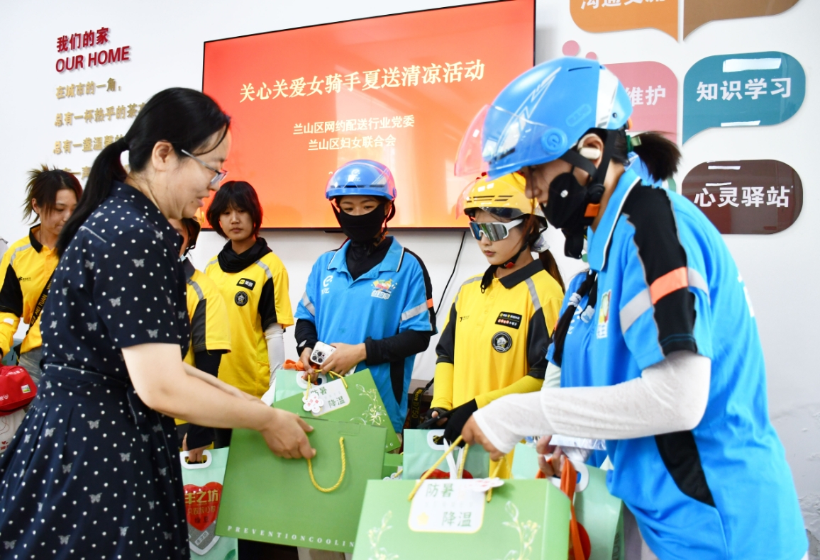 23日、蘭山区ネットデリバリー業界党委員会は区婦女連合会、区市場監督管理局と連携し、「夏のクール支援」特別活動を実施した。暑さ対策物資を満載した車から、女性デリバリー配達員の手元に届けられ、烈日の下を疾走するこれらの「都市の守護者」に敬意と慰問の意が表された。编辑:杜凤蕾