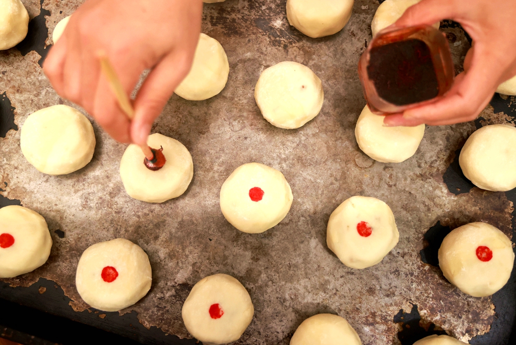 この店では、こうしたピーク需要に応えるため、事前に臨時スタッフを増員するとともに、製造および営業時間を延長するなどの対策を実施し、生地のこねから餡の包み込み、焼き上げまでの一連の工程を手作業で順調に進めている。店の担当者は「毎年この時期は忙しいですが、顧客に安心して伝統の味を届けられることが嬉しいです」と話し、手工月餅特有の香りが店の周囲に広がる中、多くの市民が買い物のために行列を作っていた。