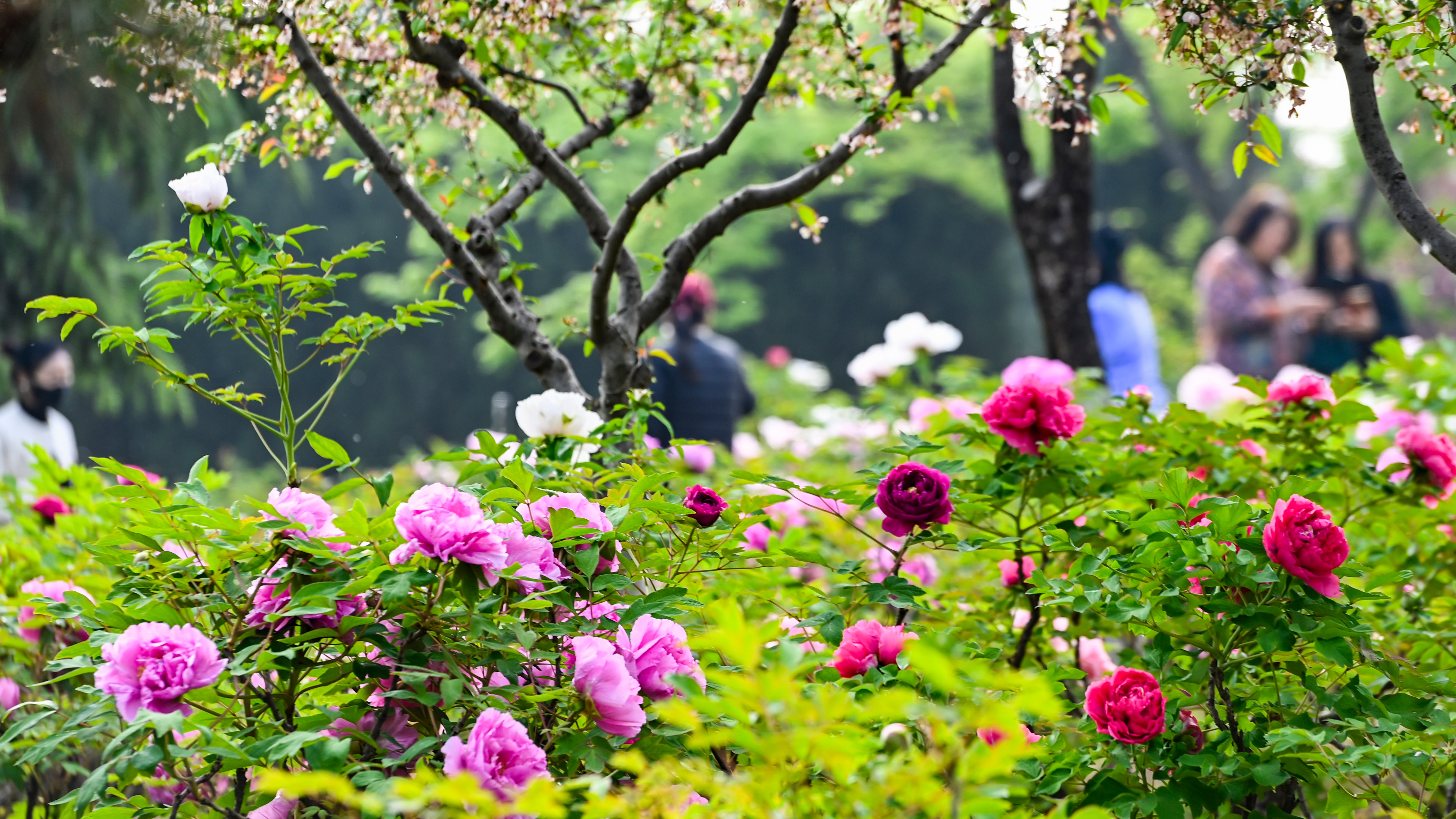 菏泽牡丹園開園、 ...島錦、首案紅、雪映桃花、緑牡丹をはじめとする多品種の牡丹が見事に咲き揃い、園内は春の華やぎに包まれた。