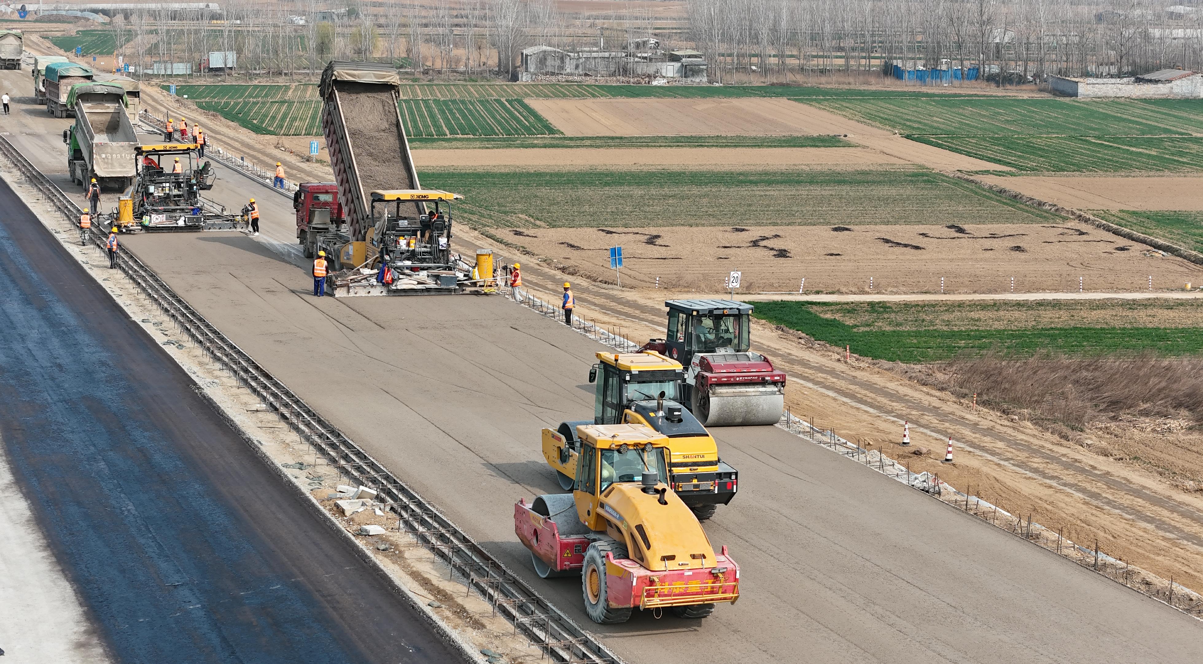 3月23日、董梁高速道路臨沂区間では路面舗装工事が精力的に進められており、同市の道路重点プロジェクト建設が全面的に加速している。