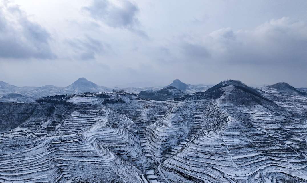 12月13日、今年度初となる降雪が蒙阴県岱崮鎮を訪れ、大自然の手によって精巧に彫られたような景色が広がった。ひらひらと舞い落ちる雪は、独特な地形を持つ崮山や広大な田園、古い風情の村々を一様に銀色に包み込み、遠目に眺めると、白い世界の中のあらゆる角落に魅力的な輪郭が浮かび上がる。この静かで夢幻的な冬日の絵巻は、岱崮鎮を時間が止まったかのような童話の国へと変え、地元住民や観光客に心を打つ冬の贈り物となっている。编辑:杜凤蕾