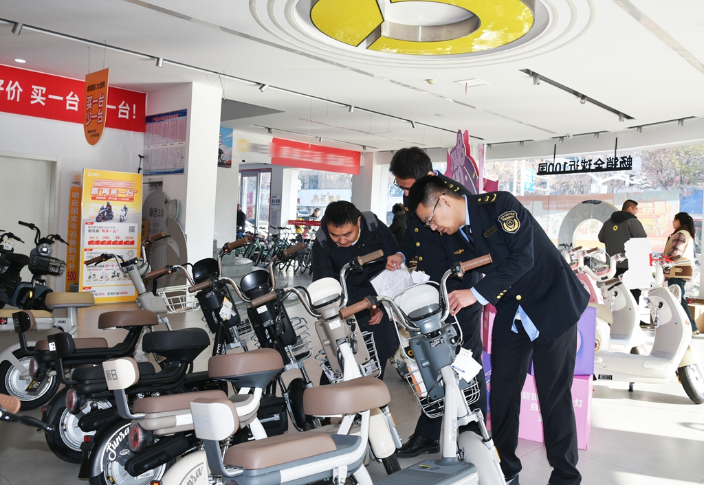 12月17日、兰山区市场监督管理局の職員は、通达路にある電気二輪車贩売店にて専门検查を実施した。新国家標準に基づく電気二輪車が発売され、旧规格车が全面的に贩売停止となったことを受け、同部门は车両の仕様・外観と承认情报の一致性などを确认する専门検查を展开している。编辑:杜凤蕾
