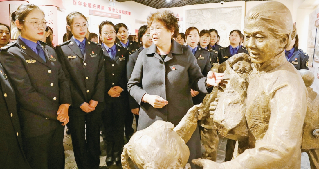 中国海洋大学の潘婷は、シナリオ劇「沂蒙六姉妹」で沂蒙の女性たちが最も素朴な党愛の理念を持ち、全力で軍隊と前線を支援する姿を見て、思わず涙を流した。潘婷は「宣伝の中での一つ一つの物語が心を打つ。これは初めて間近で沂蒙精神に触れ、その真実さと偉大さを感じ、その力強さと衝撃を体験した」と語る。