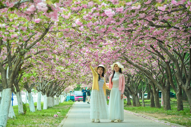 4月8日、北城新区広州路のサクラ通りでは多くの市民が花見や写真撮影を楽しみ、ピンク色の花の海に浸っていた。現在、市内各所の道路沿いでサクラが一斉に咲き誇り、ピンク色の回廊となって都市の春景色を彩っている。编辑:杜凤蕾