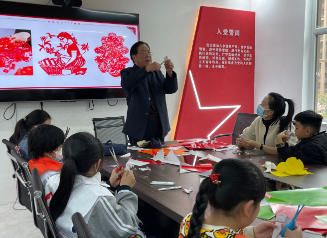 赤い紙とはさみで ...休日の午前、臨沂市西山コミュニティの活动室で、10歳の李暁(りしょう)さんが剛完成した剪紙作品を掲げ、ボランティアのお ...